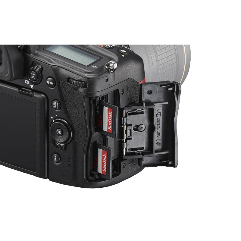Two card slots | 2 'Secure Digital' (SD) cards; the card inserted in slot 2 can be used if the card in the other slot becomes full, or for backup storage, or for separate storage of NEF (RAW) and JPEG images; pictures can be copied between cards. |