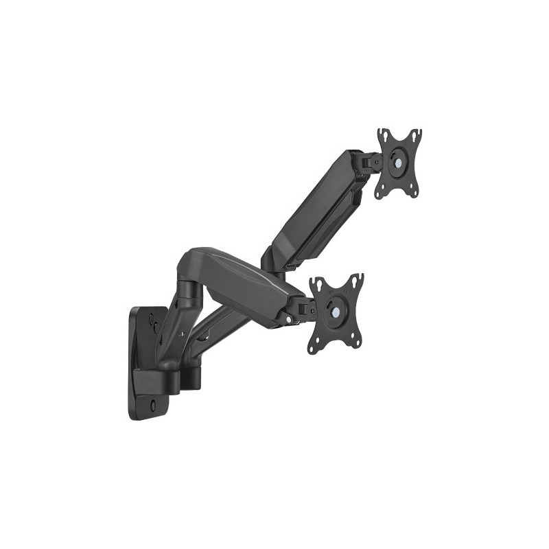 Spring-loaded wall mount for two 17'-32' monitors, blackThe spring-loaded stand with steel and aluminum construction holds two 17-32 inch screens weighing up to 9 kg. Designed for wall mounting. With spring-loaded handles.Features: