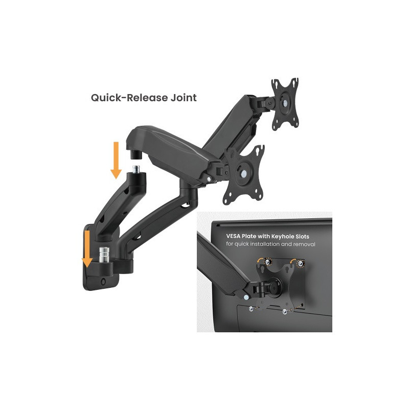 Dual 17'-32' Monitor Spring Wall Mount, Black