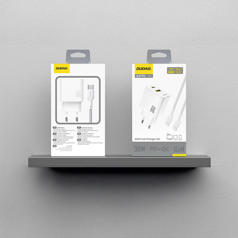 Dudao A27TCEU PD 30W GaN USB-A USB-C Wall Charger with USB-C Cable - White