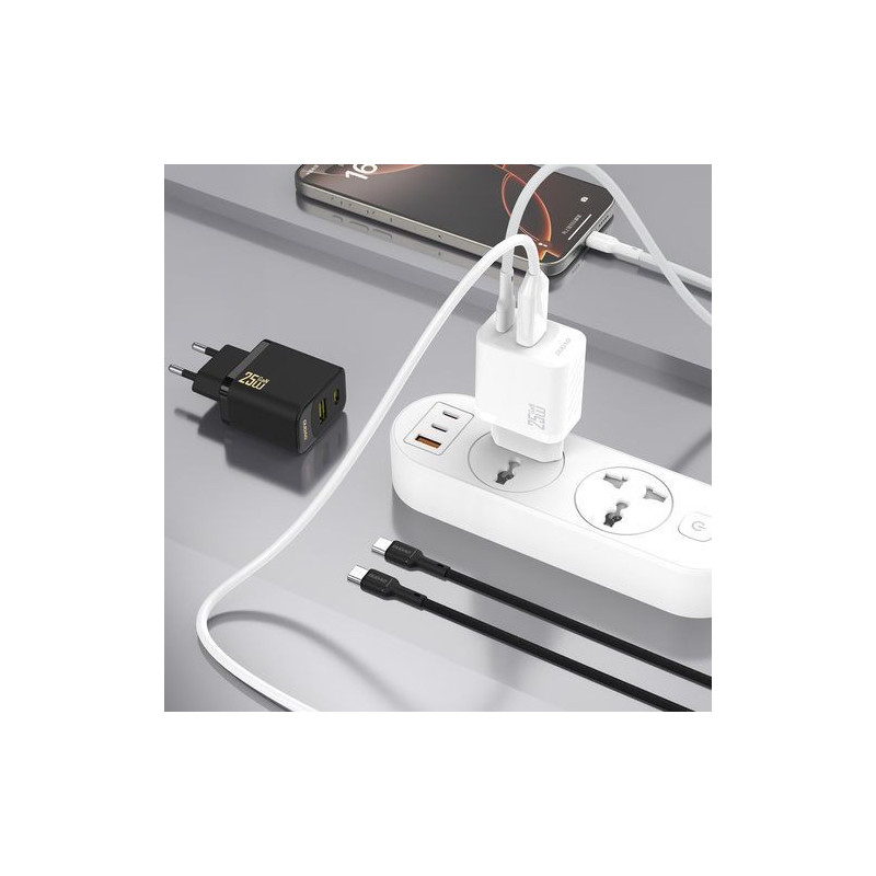 Adapter Dudao Dudao A26TCEU PD QC 25W GaN USB-A USB-C Wall Charger with USB-C Cable Black