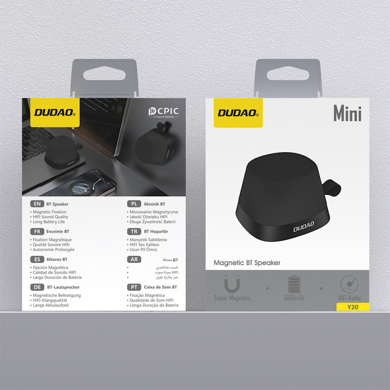 The Dudao Y20 wireless speaker is a compact device that combines Bluetooth functionality with a magnetic mount that can serve as a phone stand. The magnetic mount allows for a stable smartphone position while watching content, making video calls, or using multimedia. Bluetooth 5.3 technology supports a stable and energy-efficient wireless connection, and the built-in battery provides several hours of operation without the need for a power connection. The minimalist design and subdued colors make the speaker a perfect fit for modern home and office spaces.