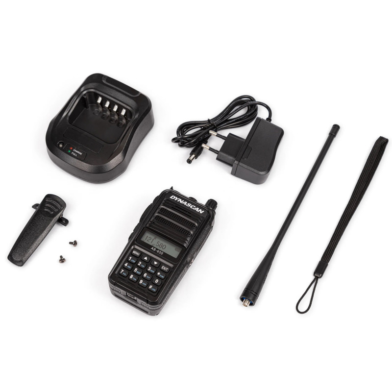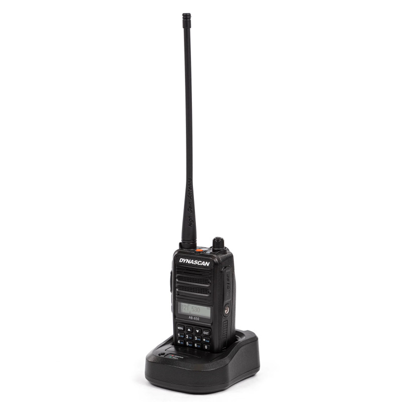 VHF Dynascan AB-650 portable radio station for aviation, 4W, SQ, 118-136.975 MHz, AM, 2600 mAh Li-Ion, FM Radio