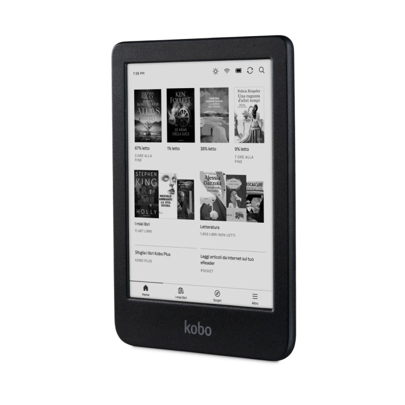 The Rakuten Kobo Clara BW is a touch-sensitive e-book reader with 16 GB of internal memory, Wi-Fi connectivity, and a waterproof design.