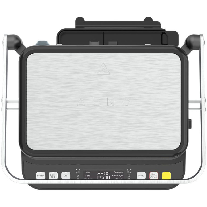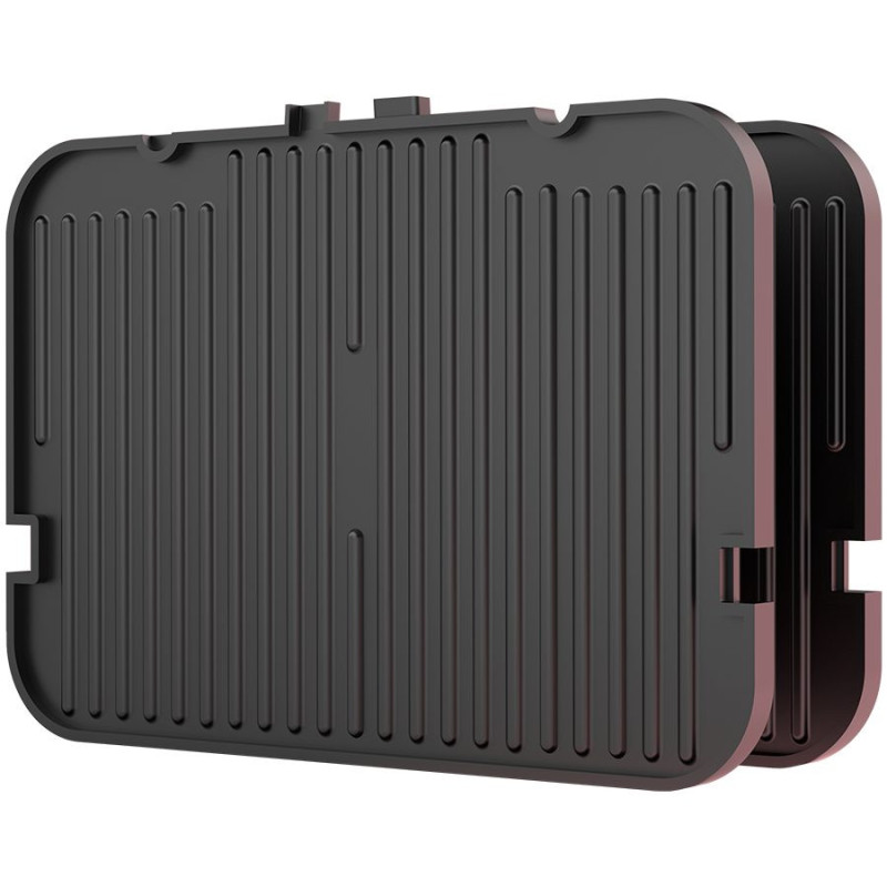 | Features | Intuitive touch control E-recipe book 3-in-1: grill, barbecue and oven Powerfull - 2000 W Precise manual settings: up to 230 °C in 5 °C increments; up to 60 minutes timer Enlarged coking space: 6 portions at the same time Cook at 2 plates at the same time: 180° opening angle Double-sided plates: choose the preferable ones - ribbed or flat Convinient LED display Auto power-off: overheat protection 5 minutes for ideal medium-rare steak Anti-slip feet keeps grill firmly in place Color and sound indication Oil drip tray: less mess while cooking Removable non-stick plates: easy-to-clean under the tap or in dishwasher Fast pre-heating: ready to use in 2 minutes Safe-to-touch: non-heated handle and top surface Included: 2 double sided plates, oil drip tray Compatible accessories always available: waffle plates, double-sided plates 320*220mm plate size Cook healthy food with no oil: non-stick plates 6 preset cooking programs: Beef, Fish, Chicken, Sausage, Humburg, Bacon 2 cooking modes: lower grill or both grills Defrost function Easy-to-clean control panel |