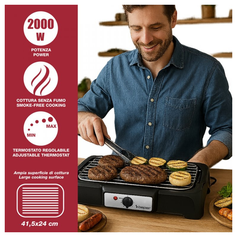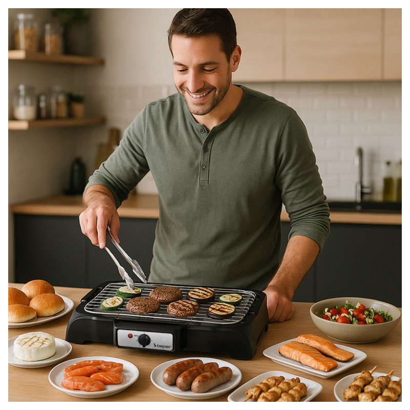 Perfect for grilling at home, on the balcony, or in the garden, this electric barbecue combines power and convenience to offer you delicious, hassle-free cooking. With this electric barbecue, you can grill quickly, safely, and without excessive smoke, bringing the pleasure of grilling right to your home.