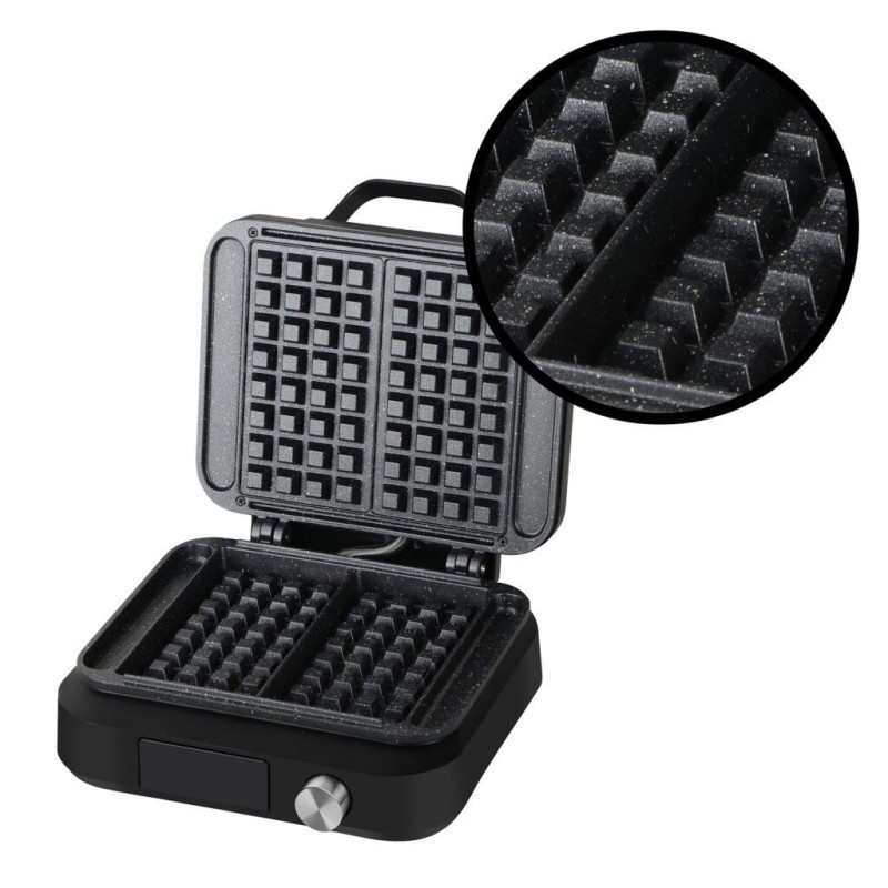 Powerful and Fast: 1500W heats up quickly, preparing two fluffy waffles in minutes.