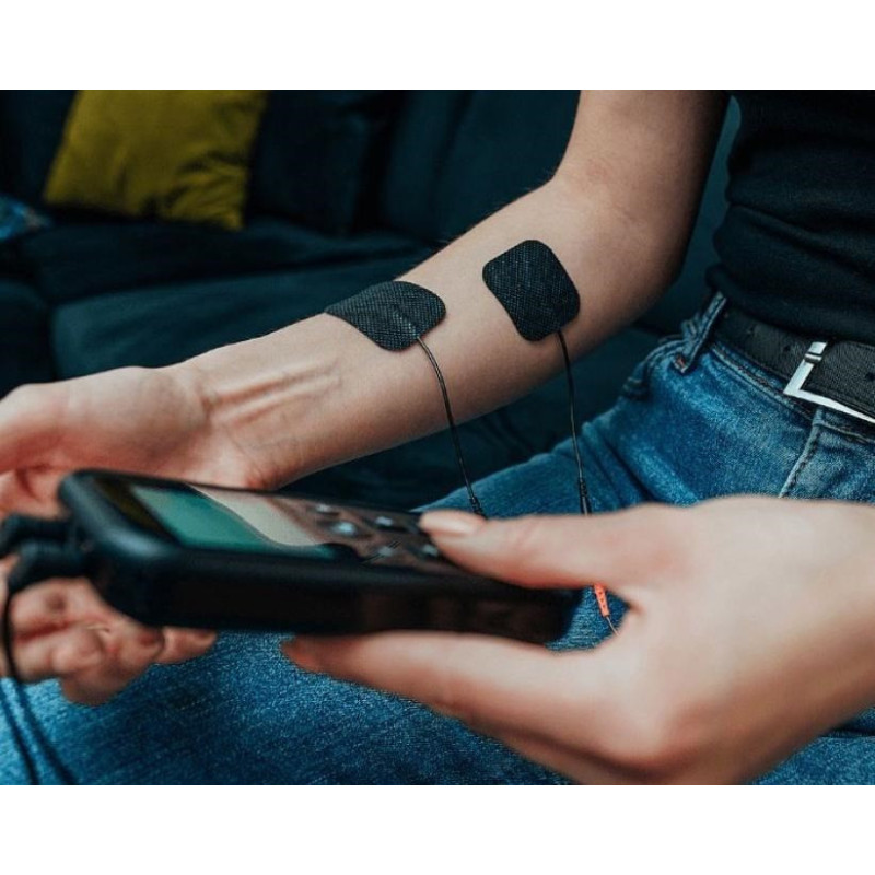 The M100A electrotherapy device offers 27 preset TENS and EMS therapy programs, and its portable, battery-powered design ensures convenience anywhere. The kit includes 4 electrodes and connecting cables, which are powered by a 3.7V microUSB rechargeable battery.