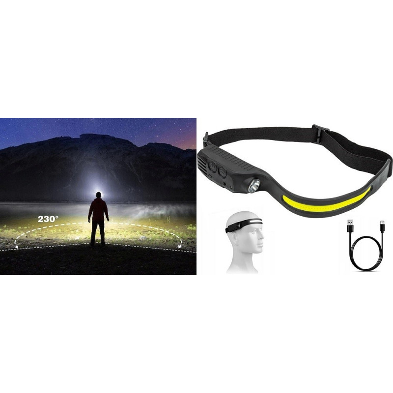 Headlamp COB +XPE, with motion sensor, 350lm, IPX4, USB-C