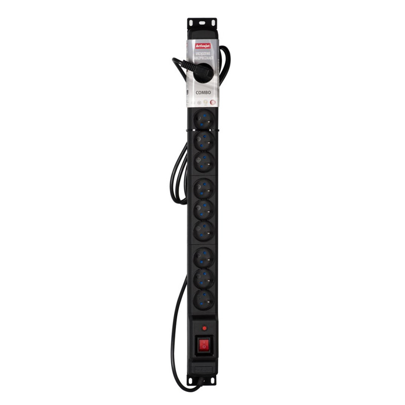 Take care of your energy with the Activejet COMBO extension cord! This 1.5 m long black extension cord has 12 AC outlets, ensuring universal connectivity for all your devices, while guaranteeing safety and convenience.