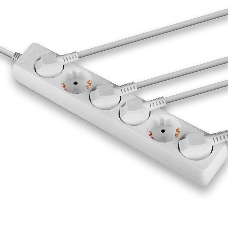 The extension cord has 6 Schuko sockets for universal connection. It has a white switch for easy power control.