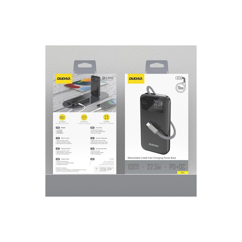 External battery Dudao "K31" black 10000mAh 22.5W (PD) + integrated cable