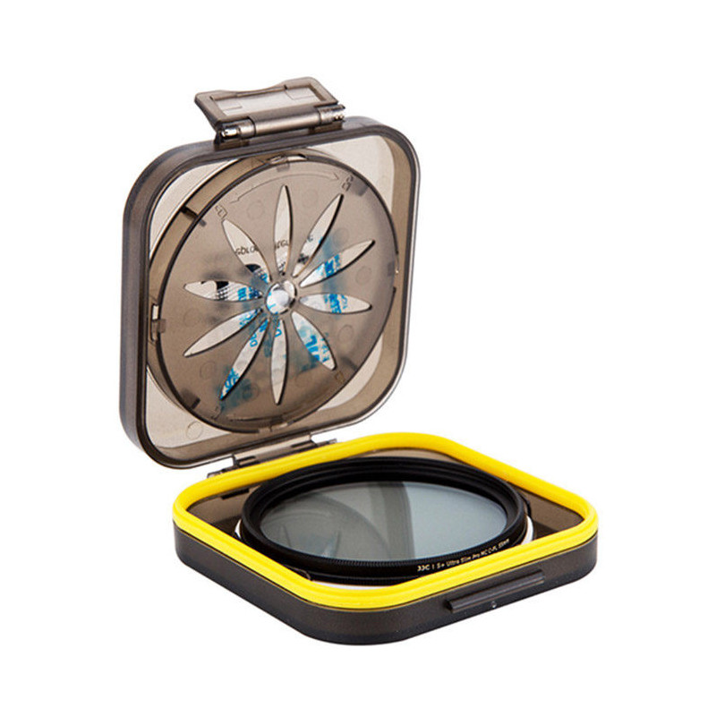 The JJC Moistureproof Filter Case Small is designed to store filters up to 58mm in diameter and 8mm in thickness. It includes silica gel packets, sponges, and O-rings to protect the filters from moisture and damage.