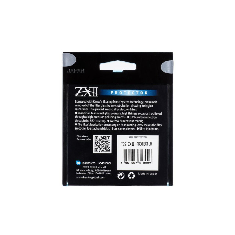 The Kenko Filter ZX II Protector 77mm is a lens filter designed to protect camera lenses from scratches, dust and moisture. It maintains image quality without causing color distortion, and is compatible with lenses with a 77mm filter thread.
