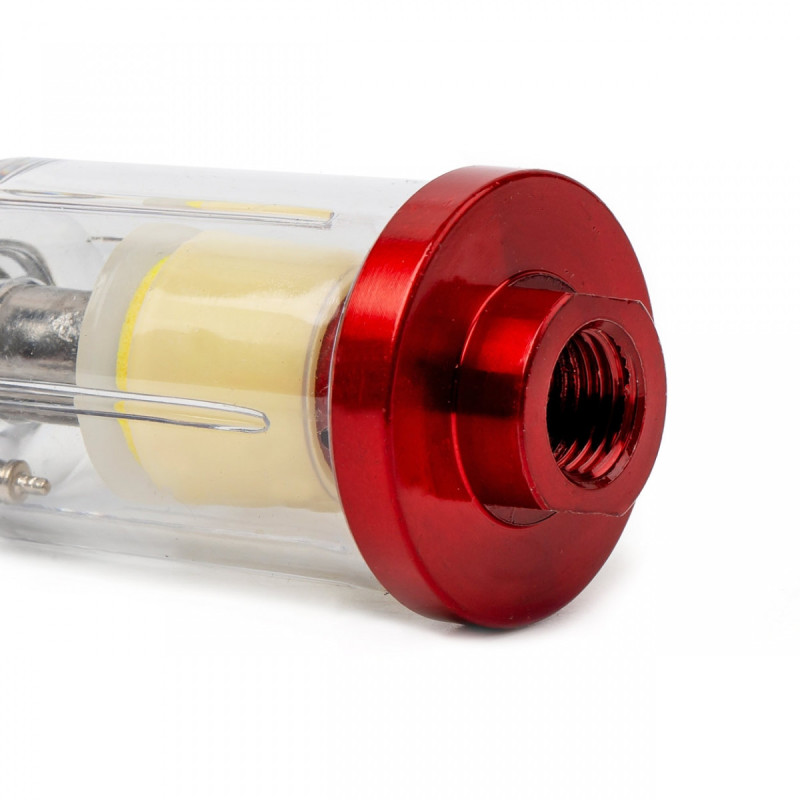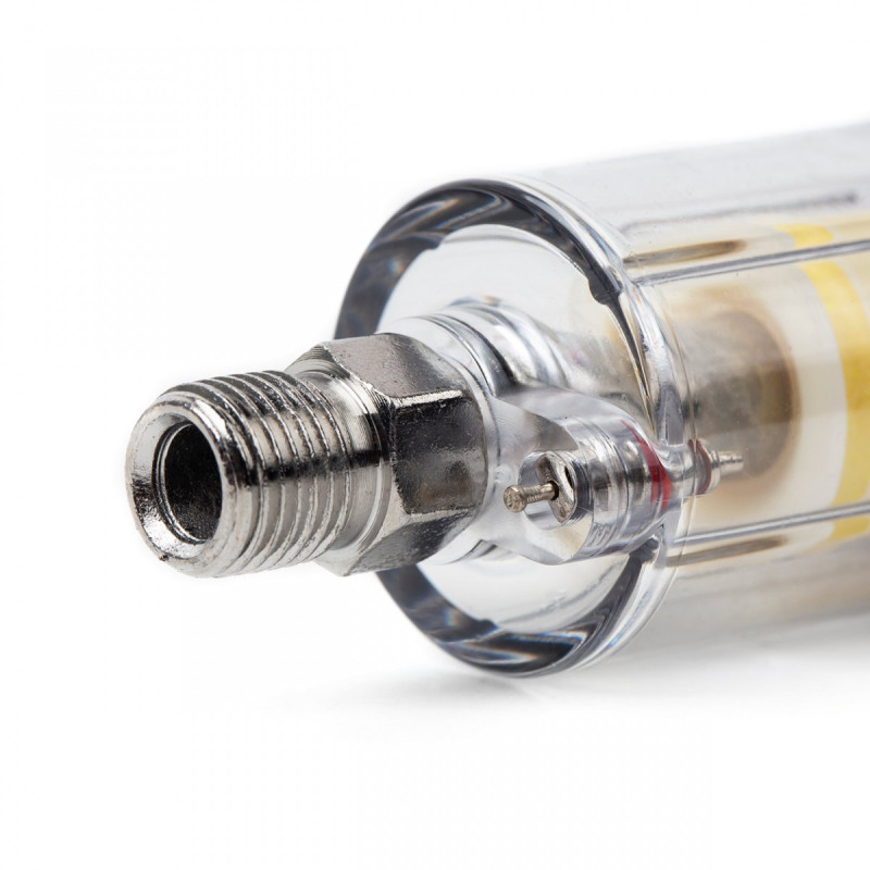 The compressed air separator captures water and oil particles that condense in the pneumatic line, intended for use with paint guns, wrenches, and other pneumatic devices.