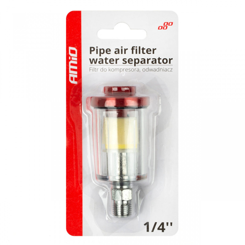 The separator can be mounted in front of the quick-connect coupling on the compressor or directly in front of the pneumatic device or paint gun.