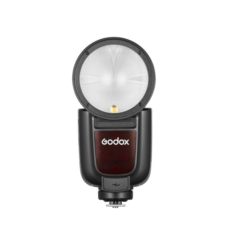 The Godox Speedlite V1Pro OM System / Panasonic is a versatile external flash unit perfect for photography, with a removable fill light component and the ability to switch from TTL to manual mode. It offers wireless transmission, a built-in lithium battery that allows for approximately 500 flashes on a single charge, and a flash duration from 1/300 to 1/20000 seconds.