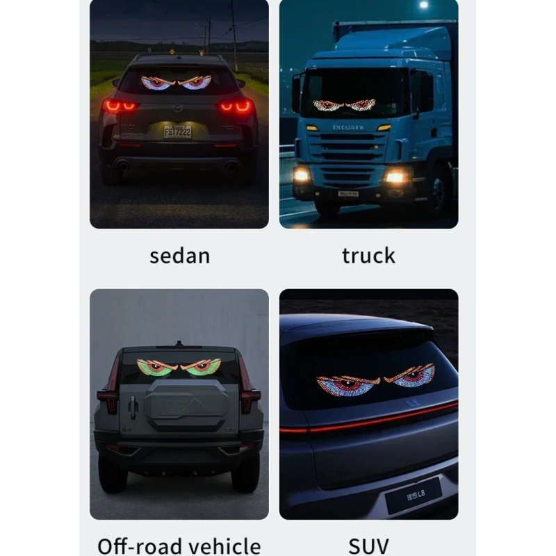 Enhance your vehicle with a bold, aggressive, and futuristic look! This Truck Devil’s Eye LED light is a dynamic decorative accessory featuring a pixel panel display, perfect for car enthusiasts, tuning, or show cars.