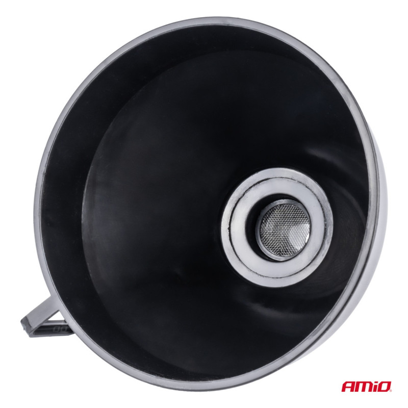 Flexible black funnel with strainer for fuel, liquid, water, 16 cm AMIO-04038