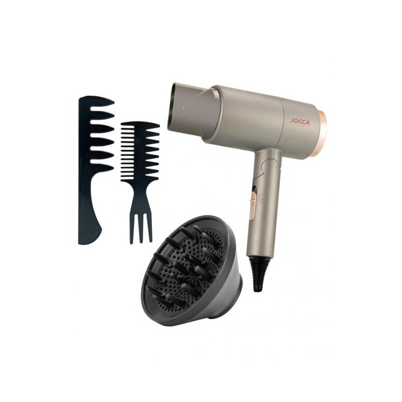 The Jocca dryer delivers fast and efficient airflow to dry and style your hair in minutes. With multiple temperature and speed settings, you can customize your drying experience by adjusting the airflow and temperature to your hair's needs to keep it healthy, beautiful, flexible and shiny, while the cool-down function will fix your style. It meets the expectations of the most demanding professionals and consumers.
