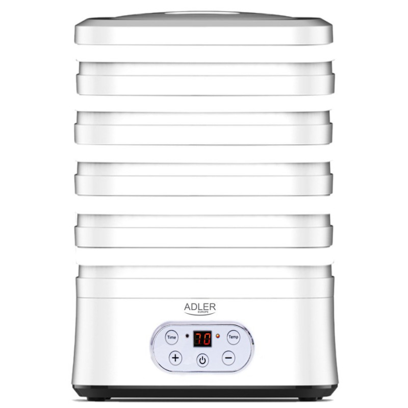 This dehydrator has 5 drying trays, allowing you to dry a variety of foods at the same time. The LCD display provides convenient temperature and timer settings.