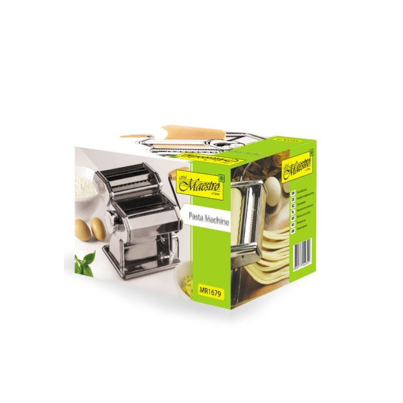 The manual pasta machine, made of stainless steel, is easy to disassemble, use and clean. It is perfect for making pasta and allows you to change parts.