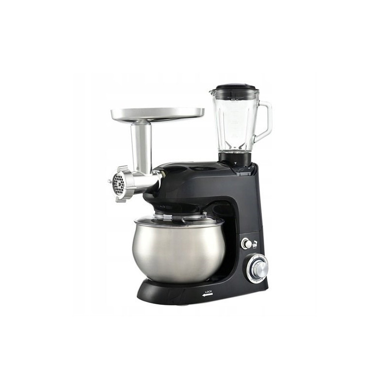 The 3-in-1 MR-559-M MAESTRO planetary mixer has a 5-liter stainless steel bowl and accessories for beating, kneading and mixing. It features a powerful 2000 W motor with six variable speeds and an integrated meat grinder.