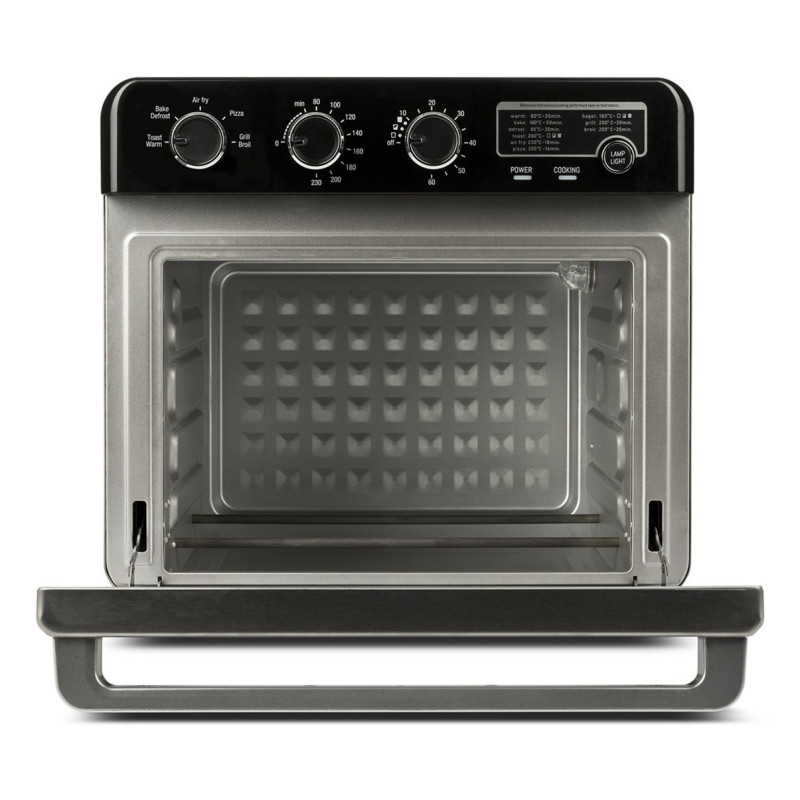 The G3 Ferrari G10221 is a 32L hot air fryer with a maximum temperature setting of 230°C and a digital timer that can be set up to 60 minutes. It has six heating elements and five cooking program options that allow you to fry, grill and bake.