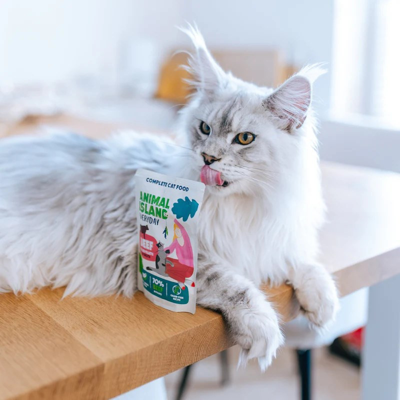 ANIMAL ISLAND Beef in Juice is a complete wet cat food suitable for adult cats of all breeds. It is grain, gluten and artificial colours free, providing essential nutrition for strong bones and a healthy coat.