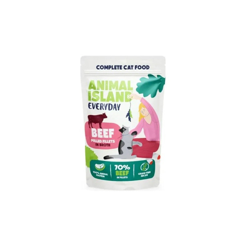 ANIMAL ISLAND Beef in Broth is a complete wet cat food suitable for adult cats of all breeds. Grain-free, gluten-free and free of artificial colours, it provides essential nutrients for strong bones and a healthy coat.