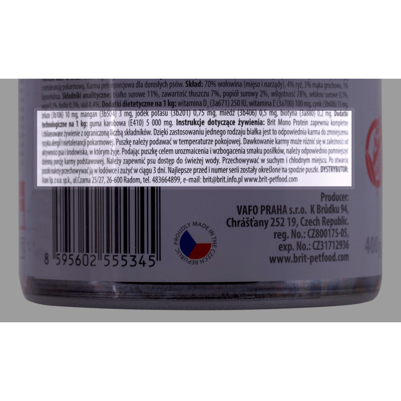 BRIT Mono Protein Beef & Rice - wet dog food - 400g