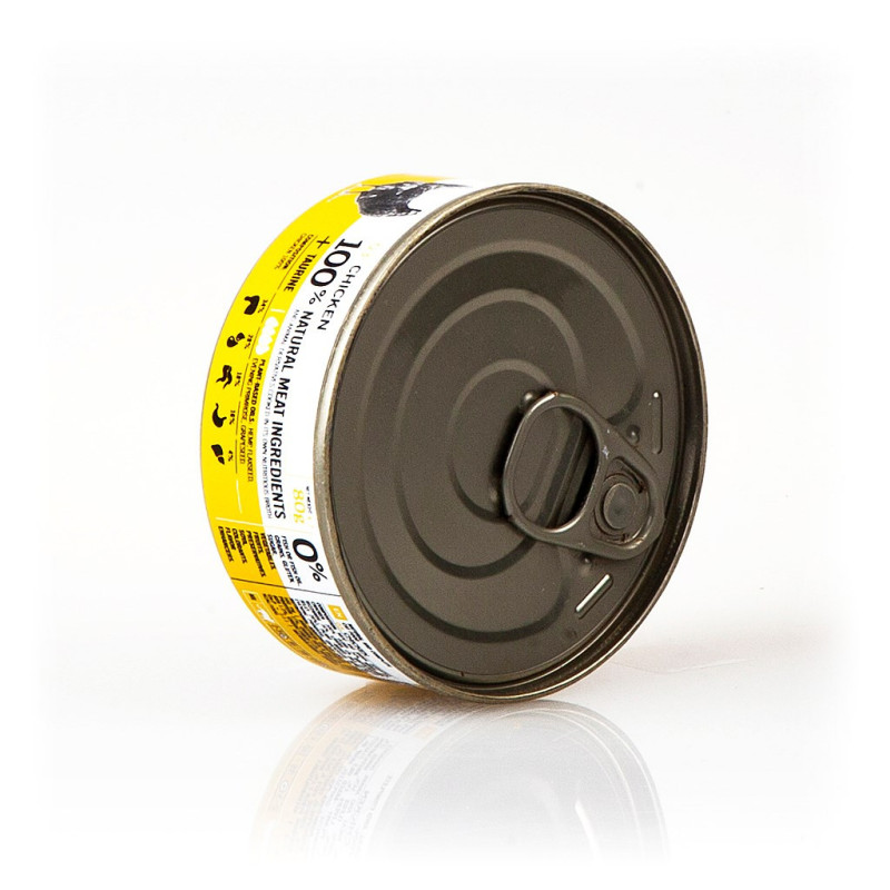 Wet cat food with chicken flavor, suitable for adult cats of all breeds. Gluten-free, grain-free, designed for food allergies and intolerances.