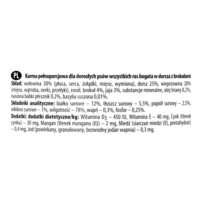 Rich in cod and broccoli, this premium dog food is formulated for adult dogs.