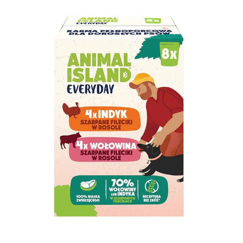 Wet dog food made with turkey and beef fillet in broth, suitable for adult dogs of all breeds. Formulated to support general health, digestion and skin and coat condition, it is free of sugar, gluten and artificial colours.