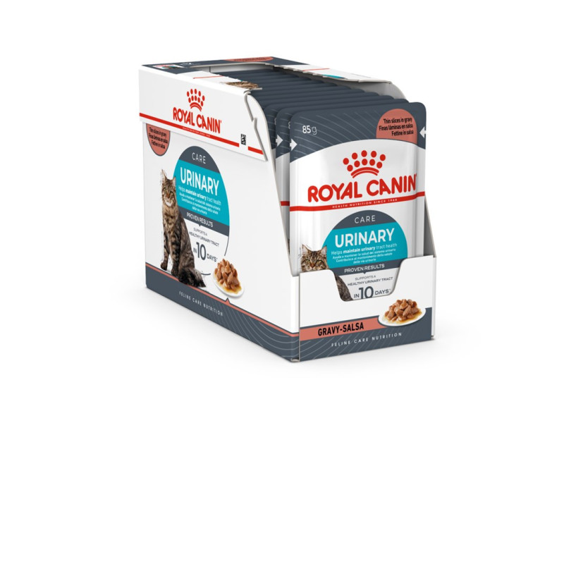 Royal Canin Urinary Care with Gravy is a veterinary-specific wet cat food developed for adult cats with urinary tract problems.