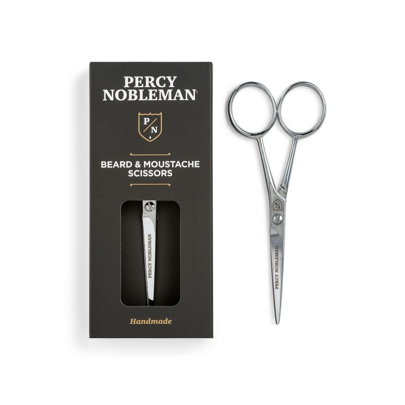 No need to worry if you can't get to your barber and your mustache is sticking out in all directions. You can manage your mustache and beard hair at home with the special Percy Nobleman beard scissors.