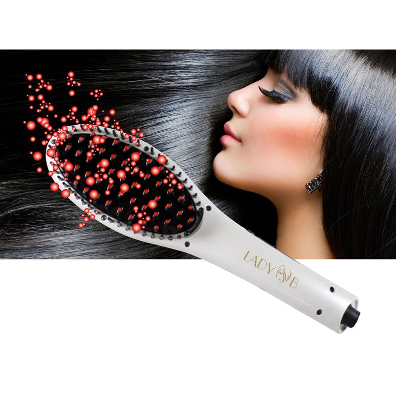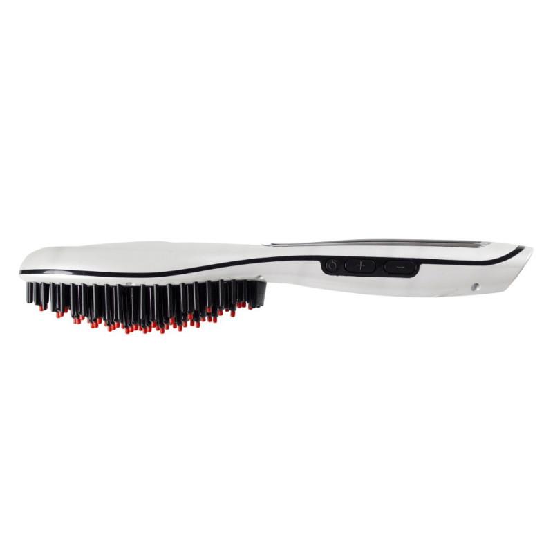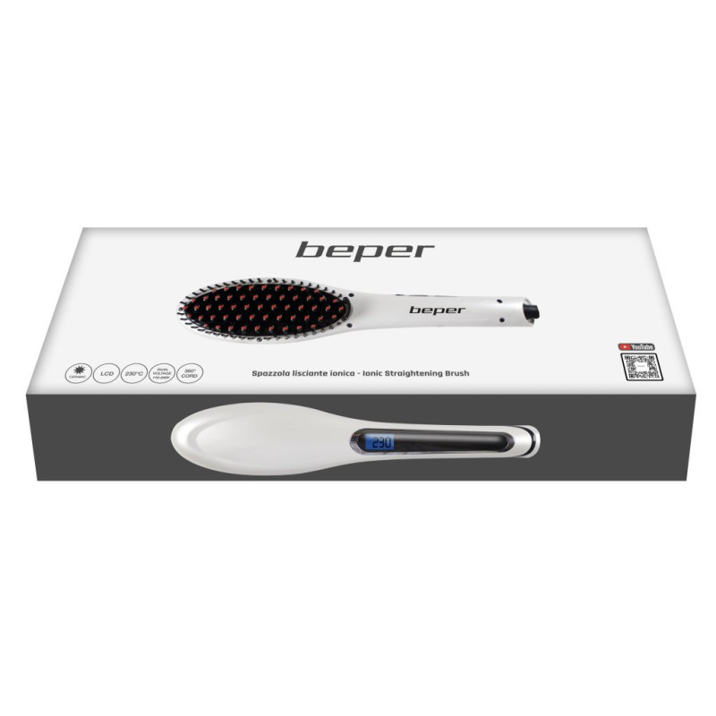 Smoothing brush with ceramic coating equipped with ionic technology to smooth the hair without frizz. Bristle tip coated for greater comfort. Temperature visible on the LCD display adjustable from 80°C to 230°C in increments of 5°C. 360° rotating cable.