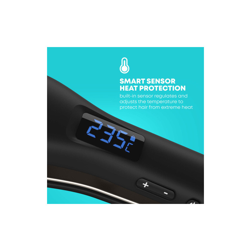 Smart sensor heat protection technology regulates and adjusts the temperature for minimal hair damage