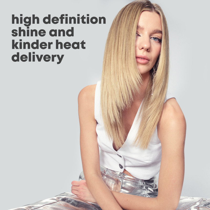 Ceramic and infrared-generating plates infused with Progloss™ super smooth keratin, argan and coconut oils for kind heat delivery and ultra-smooth finish
