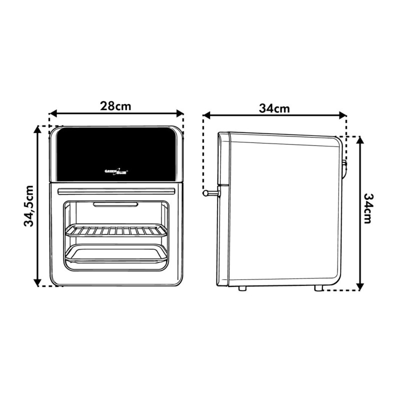 GreenBlue AIR FRYER Oil-Free Air Fryer, 1800W, 10L capacity, 8 programs, accessories, timer, GB950