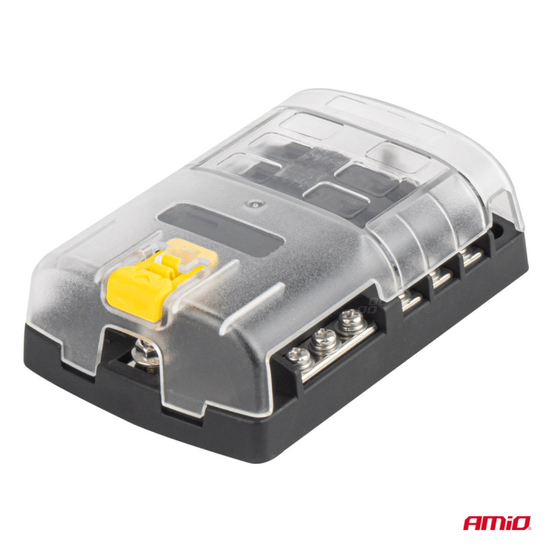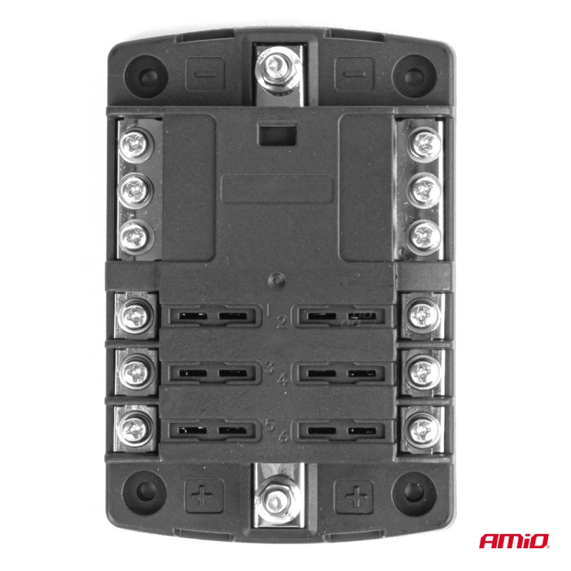 We present a high-quality fuse box with a negative terminal block and screw-type connectors, equipped with 6 fuse slots. This product is ideal for managing electrical circuits in vehicles, boats, and various power installations, ensuring safety and ease of use.
