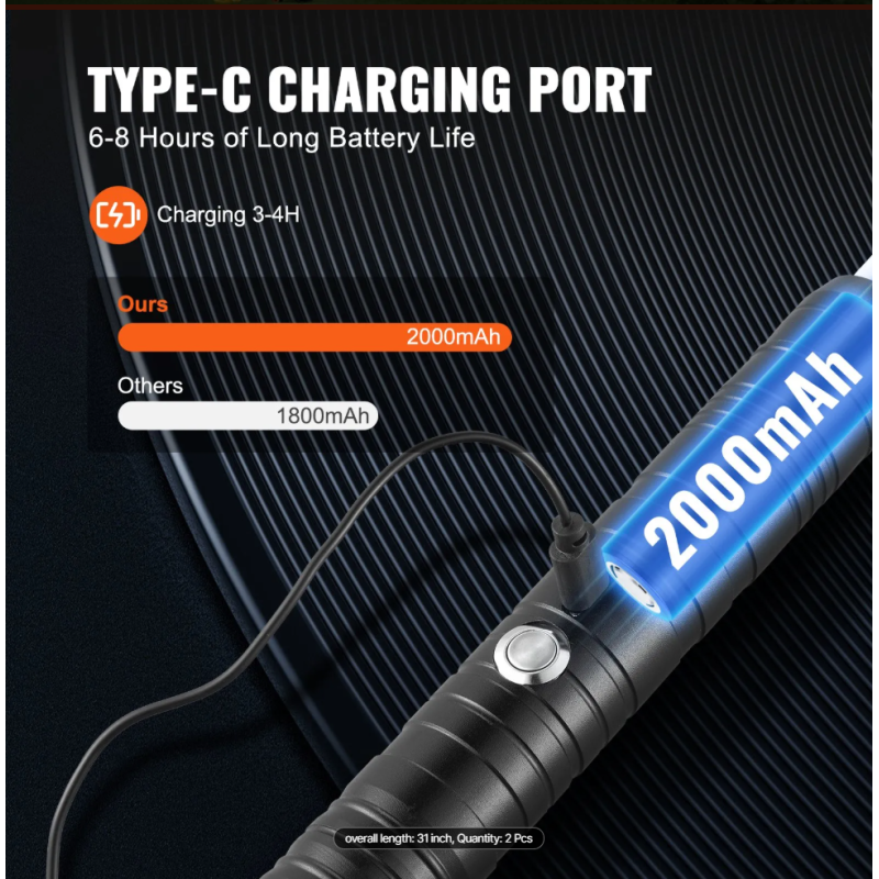 Battery: rechargeable lithium battery (18650)