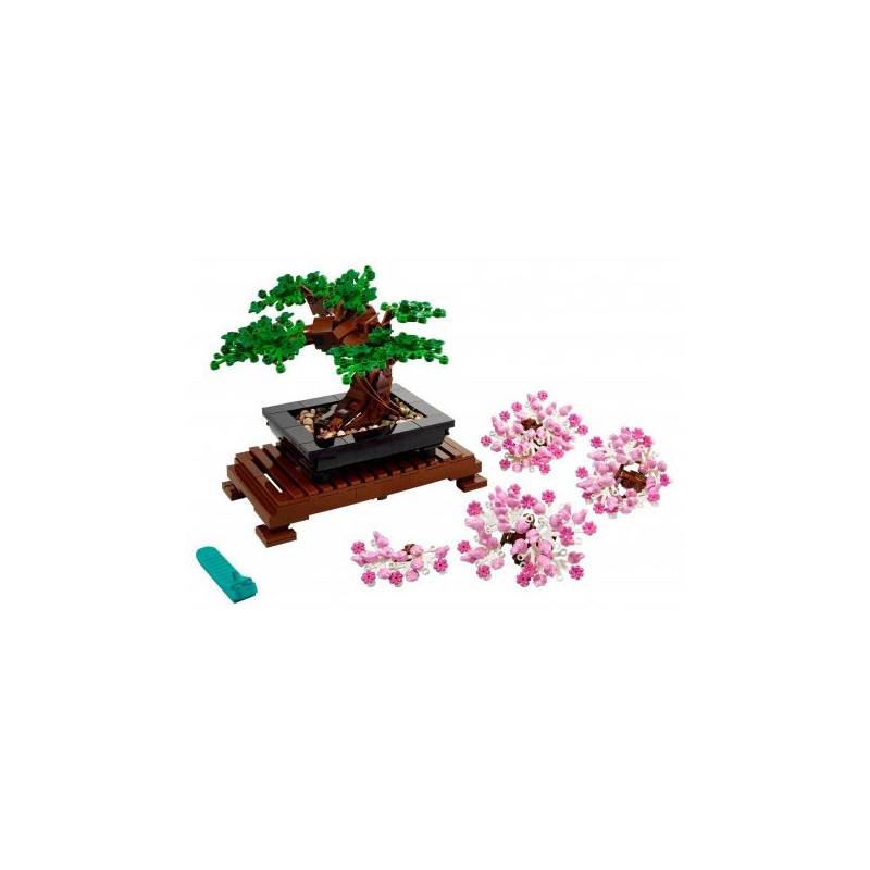 LEGO Icons 10281 Bonsai Tree is a miniature tree with a single trunk and three branches, made from LEGO bricks.