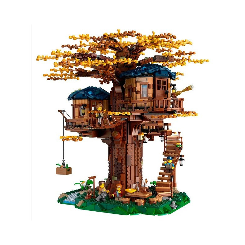 The LEGO IDEAS 21318 Treehouse set consists of 3,036 pieces. It features a buildable treehouse with a working rope system and 4 minifigures.