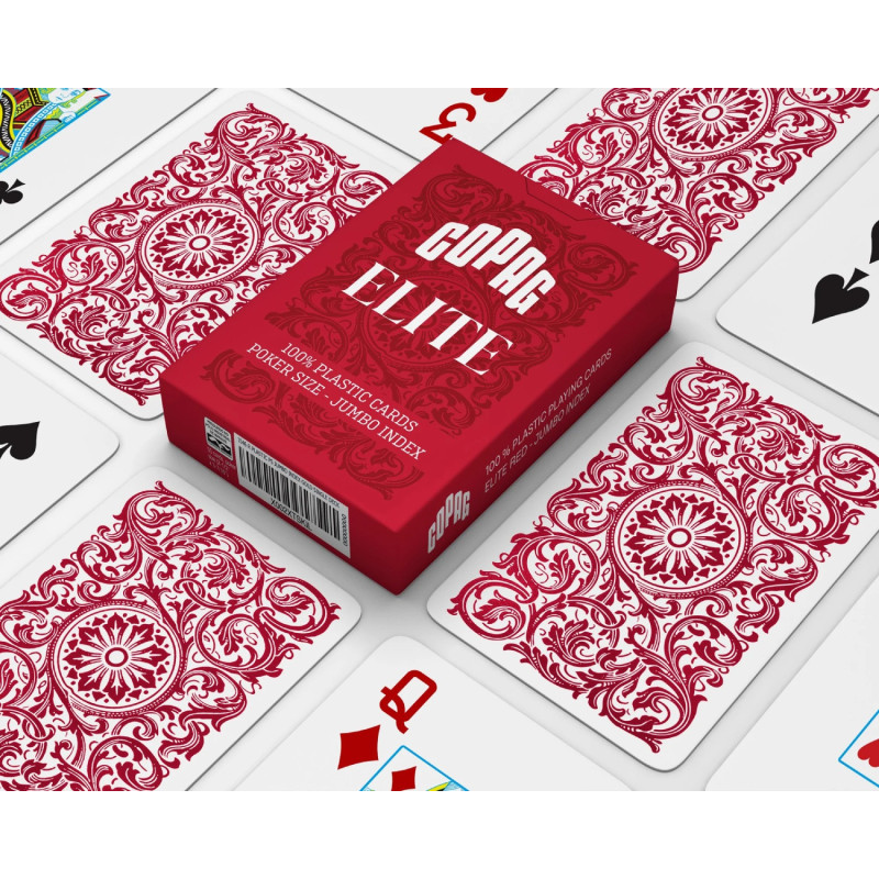 The new Copag Elite Poker Sized Jumbo Index playing cards feature one of the most popular styles in gaming rooms and homes today. These cards are 100% plastic - durable, washable and extremely long-lasting.