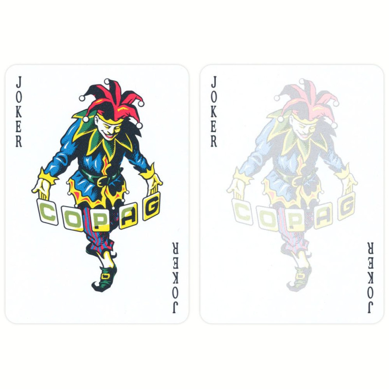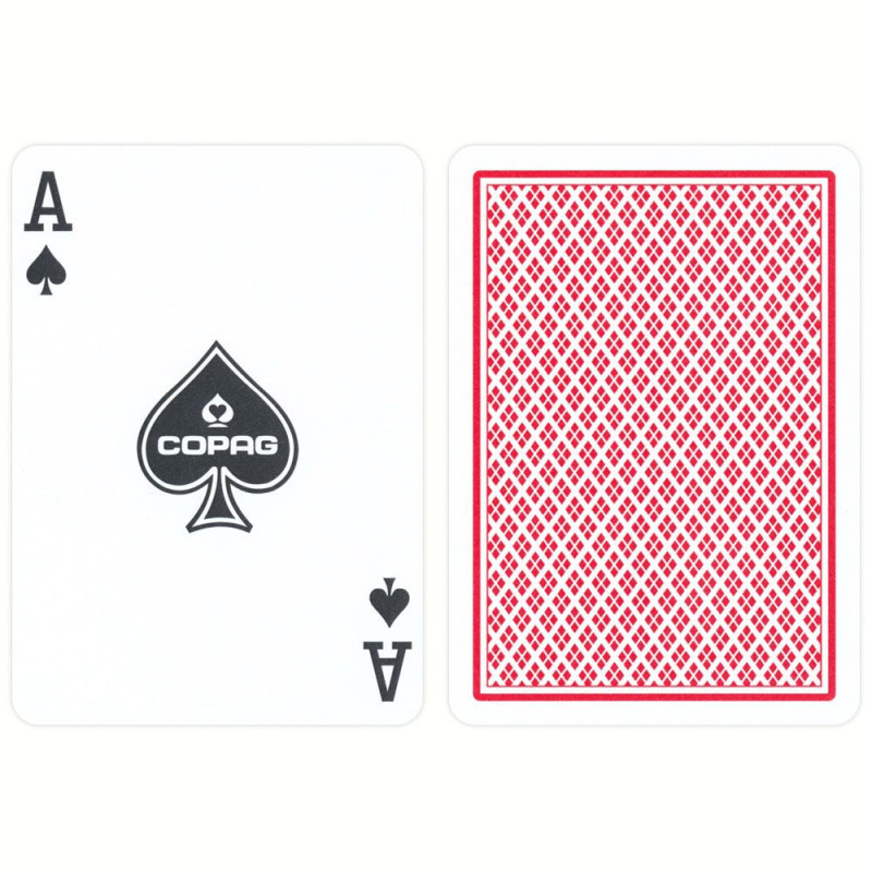 This Copag deck is made of high quality PVC plastic and is recognized worldwide. These standard Copag cards are opaque, waterproof and very durable. This deck contains 55 poker size playing cards made by Cartamundi in Belgium. The standard playing cards are made of 100% plastic and come with 2 jokers and 1 Copag guarantee card. These poker cards come with 2 standard indexes in two corners.