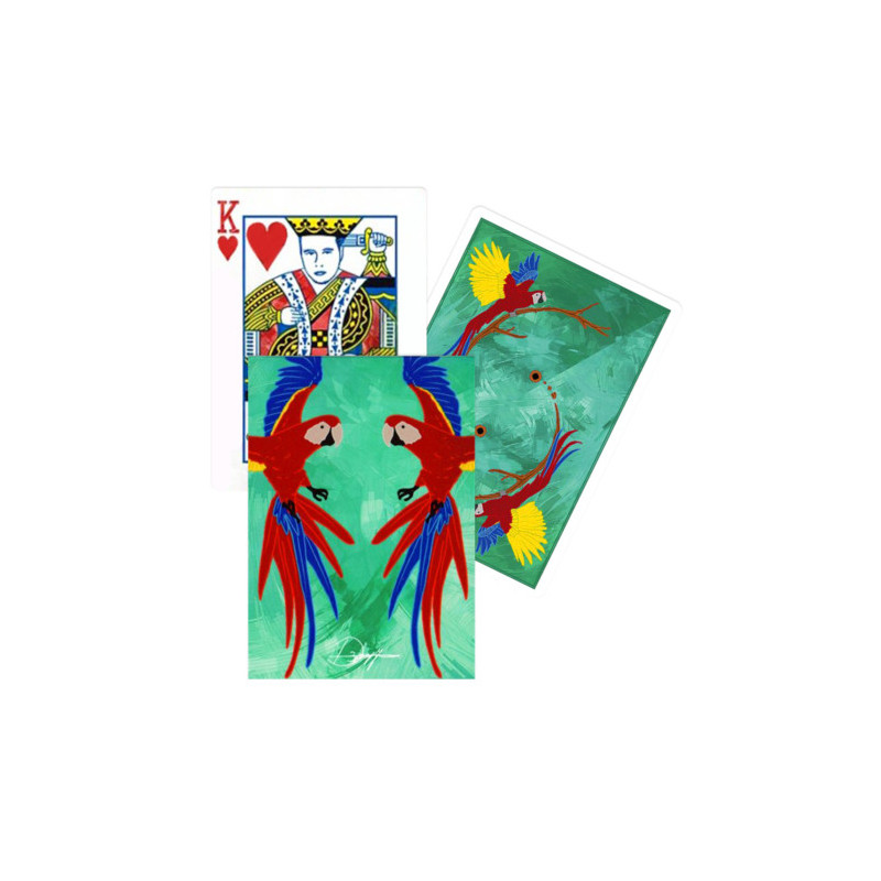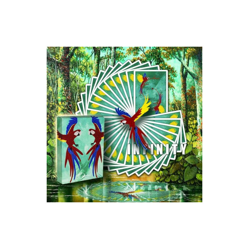 Finally, the 'Infinity' playing cards are here! Infinity encompasses everything, enveloping everything to infinity! That's why the name Infinity was chosen for the deck. The back of the cards - also on the joker - depicts two parrots emerging from black holes; these birds symbolize the sky, and the earth is the branch on which they rest. And the sky and the earth represent all the present in the universe. 'Infinity' is a deck of cards suitable for both magic and card art. The shredded stock used makes the cards appear smaller than they really are, making them perfectly manageable. The beautifully crafted deck was made by USPCC, so you can already imagine its excellent quality. All the kings and jokers have been modified and adapted... try to recognize them! The deck design was almost entirely handmade. The mountain is enriched by several special cards: 1 trick card - 1 duplicate of the Queen of Hearts - 1 regular joker and 1 trick joker.