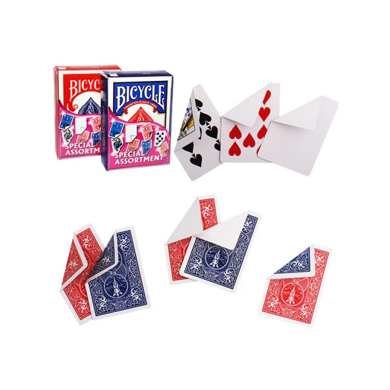 The Bicycle Special Assortment deck includes 52 unique cards designed for magicians and card enthusiasts. The deck features a variety of card types, including duplicate and blank cards, made from authentic Bicycle materials.
