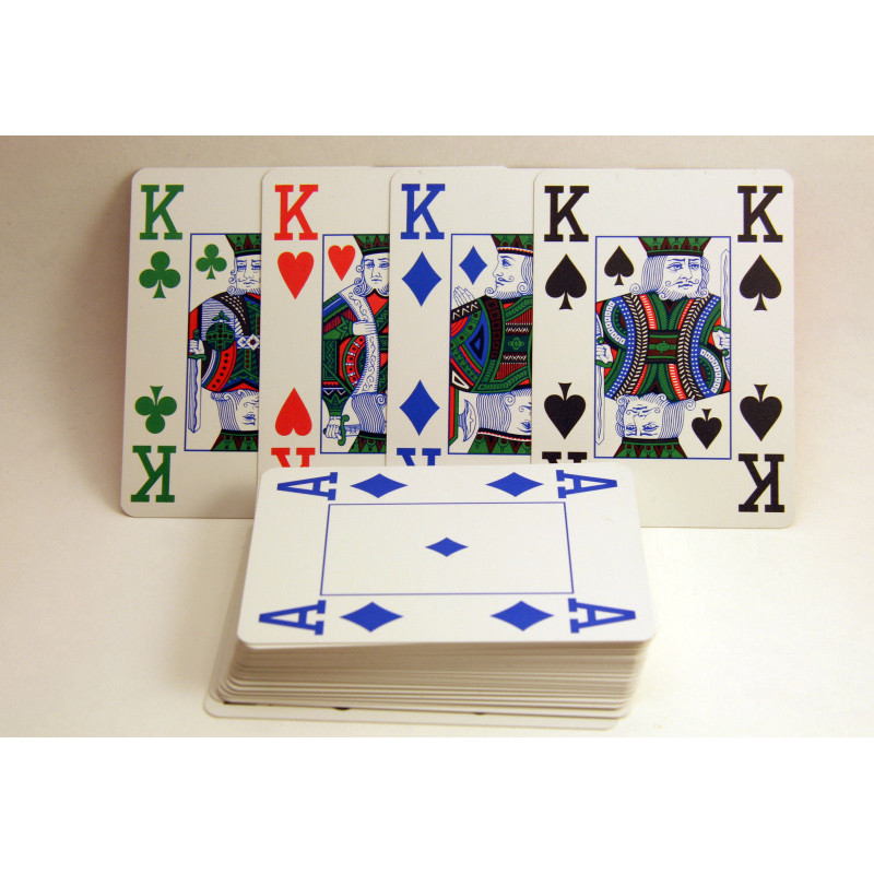 Copag 4 Color Jumbo Index Poker Cards are made of 100% PVC plastic and feature a unique four-color design. The set includes 52 cards and 2 jokers, measuring 63.5 x 88.9 mm and weighing 135 g.