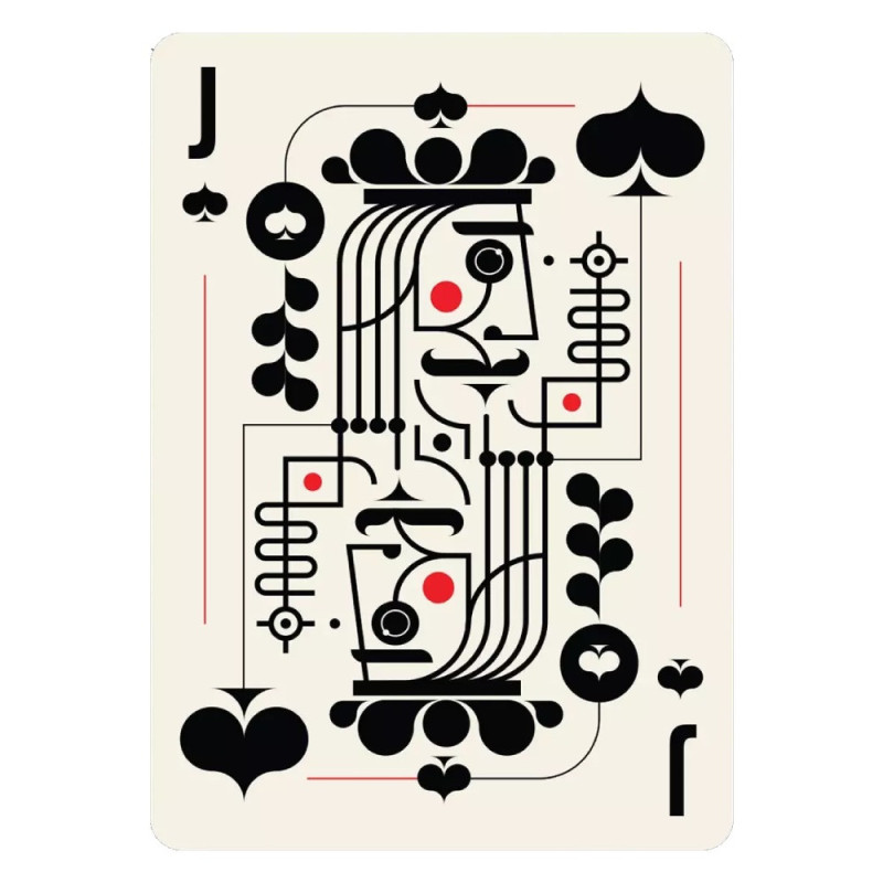 Messymod playing cards feature a unique minimalist design, consisting of 52 cards and 2 jokers, measuring 63.5 x 88.9 mm. Made from FSC certified paper and vegetable dyes, they are suitable for a variety of card games and tricks.